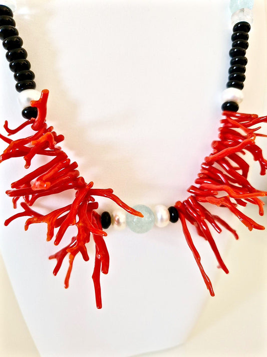 Collana Chanellina Corallo e Agata nera