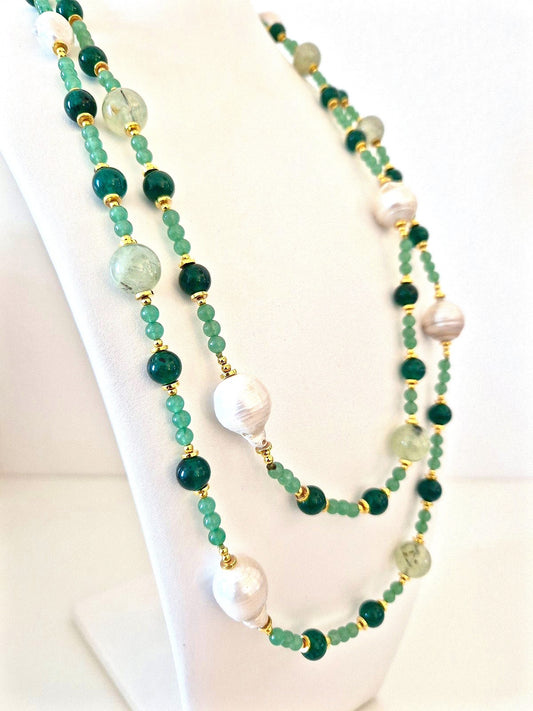 Collana Chanel Perle, Acquamarine Naturali e Agata nera