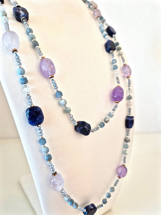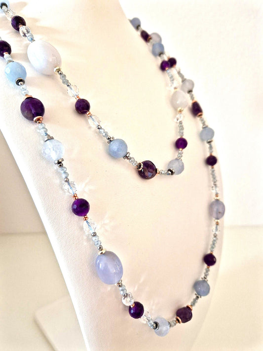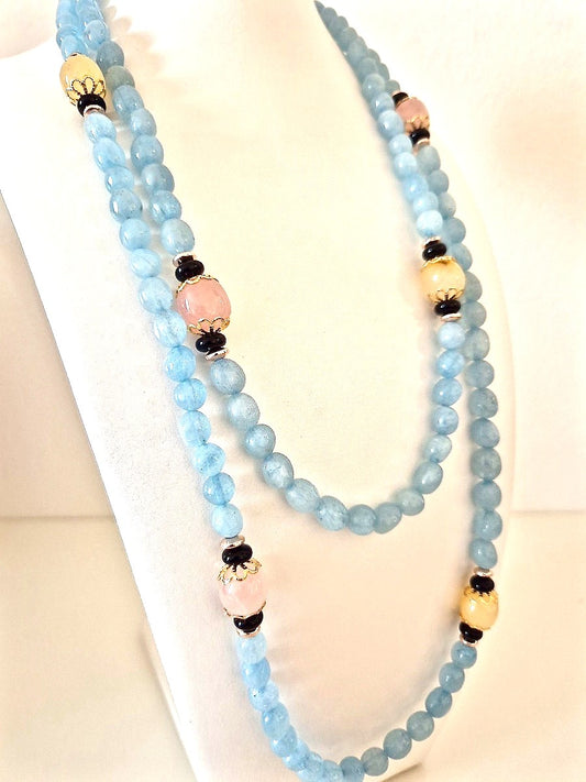 Collana Acquamarine e Calcedoni naturali