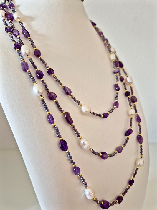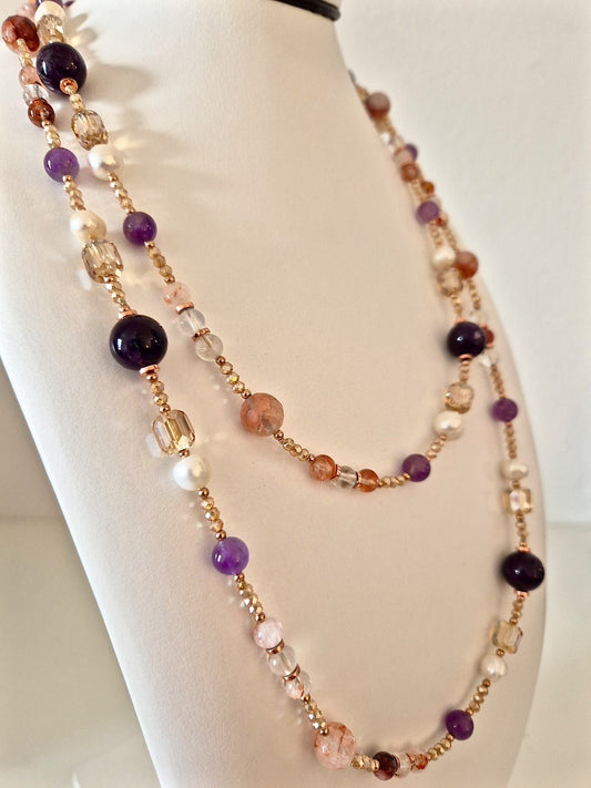 Collana Chanellina Ametiste e Perle